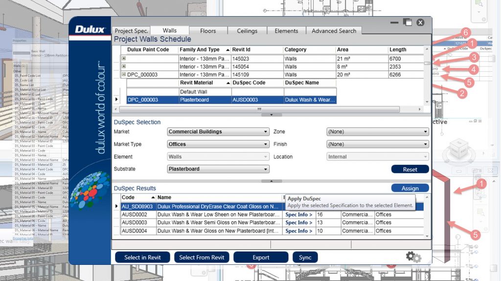 The Dulux DuSpec Revit Add-In user interface allows users to view their Revit project database (Revit Element information) and a condensed database of DuSpec information and specifications. This video overview demonstrated how users can sort and search both the Revit…